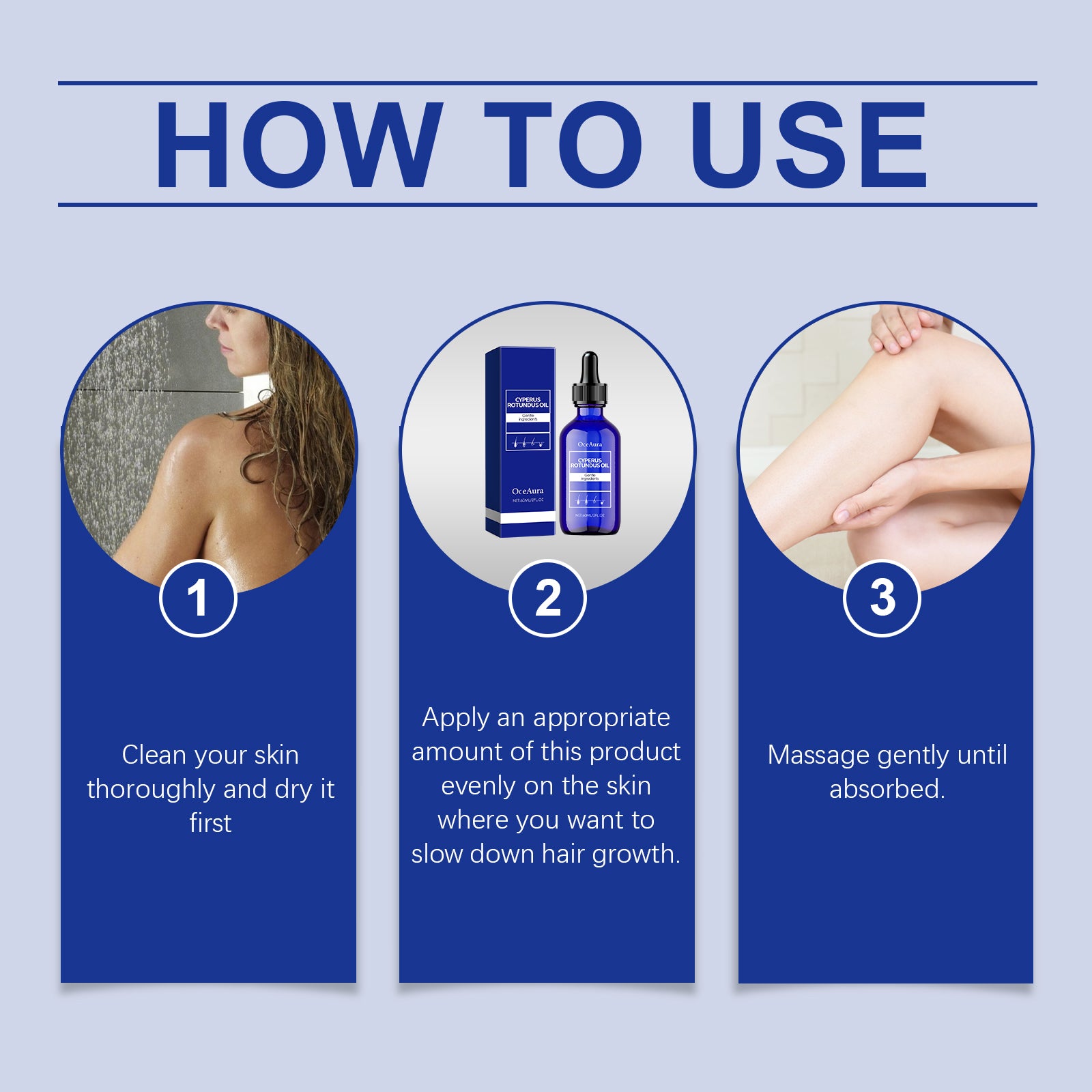 Our essential oils for hair care contain mineral oil and Radix aconite extract. It can effectively reduce body hair and keep skin smooth and delicate. Long-lasting moisturizing effect keeps skin hydrated and reduces dryness. Its application is simple: First, thoroughly clean and dry the skin, and evenly apply an appropriate amount of the product to the skin that you want to slow down hair growth. Massage until fully absorbed. And can gently inhibit the growth of body hair, reduce the appearance of body hair, so that your skin gradually becomes more smooth and delicate.